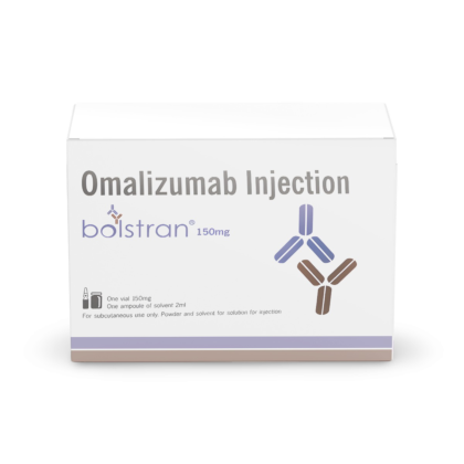 Bolstran 150 is a prescription medication containing Omalizumab, a monoclonal antibody that treats moderate to severe Asthma. This injectable medication belongs to the class of anti-IgE antibodies and works by reducing allergic inflammation in the airways.