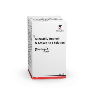 Shaltop A Solution is a topical solution for Alopecia (hair thinning) and hair loss. It contains three active ingredients: Minoxidil, a vasodilator that increases blood flow; Azelaic acid, a dicarboxylic acid that lowers Dihydrotestosterone (DHT); and Tretinoin, a vitamin A derivative that stimulates hair follicle development.