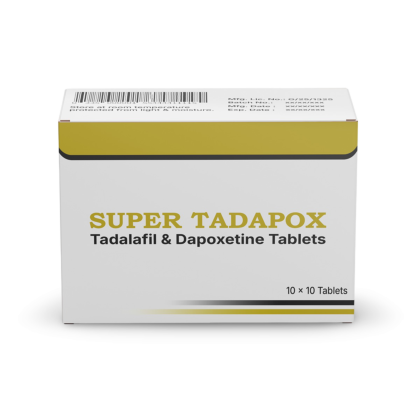 Super Tadapox tablet is an oral combination medicine used for Erectile Dysfunction (ED) and Premature Ejaculation (PE). It contains Tadalafil and Dapoxetine, two FDA-approved salts. Tadalafil belongs to the Phosphodiesterase type 5 (PDE5) inhibitor class, while Dapoxetine is a short-acting Selective Serotonin Reuptake Inhibitor (SSRI).